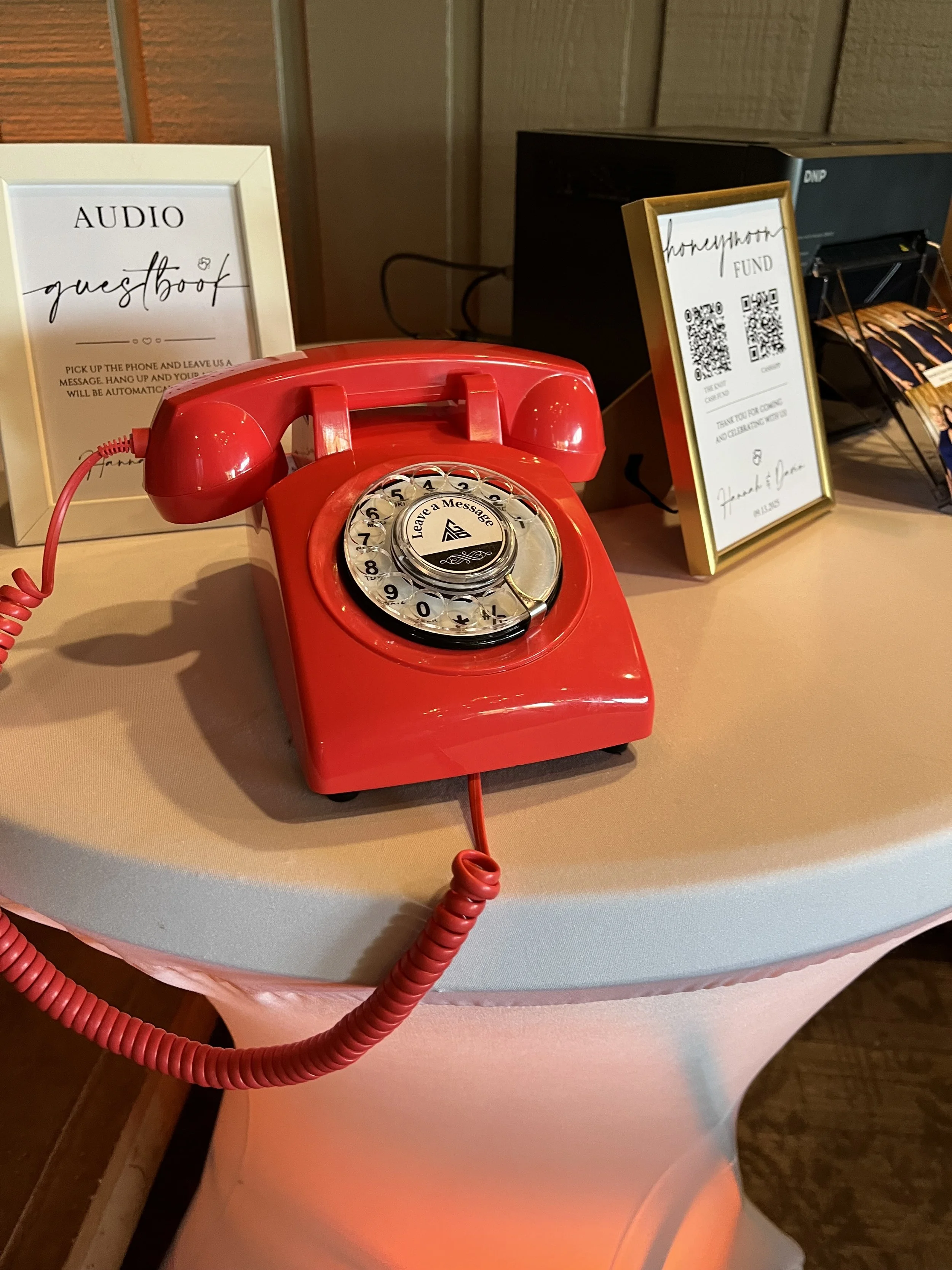 Guests pick it up, hear your greeting, and leave heartfelt advice, inside jokes, or outrageous stories. The next day I send you an mp3 of love notes, toasts, and hilarious late-night confessions.